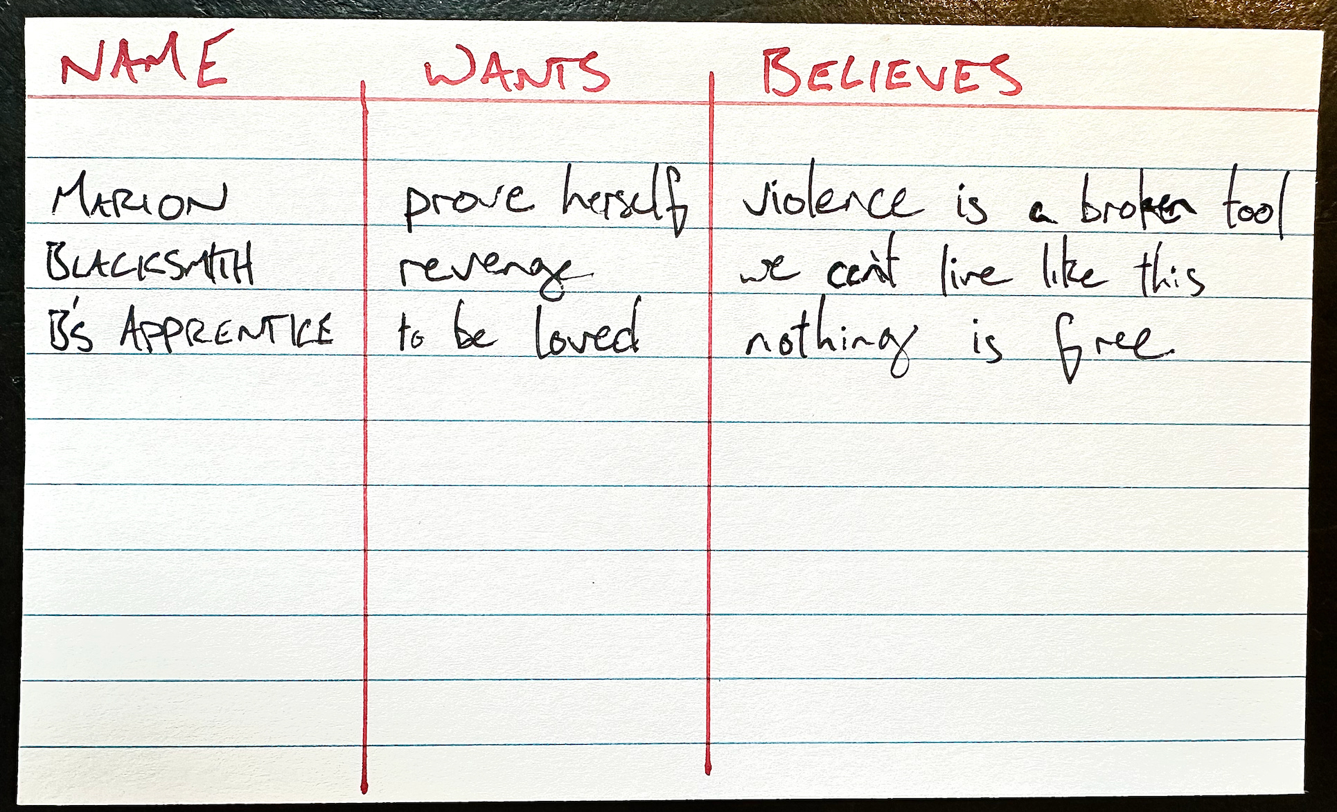 For every NPC you play, ask: